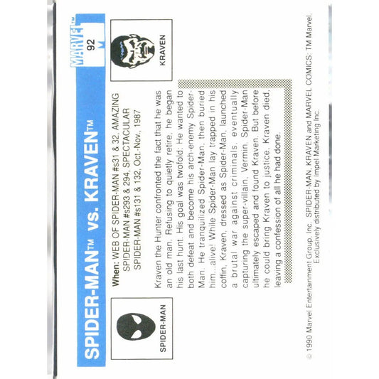 1990 Impel Marvel Universe #92 Spider-Man vs. Kraven