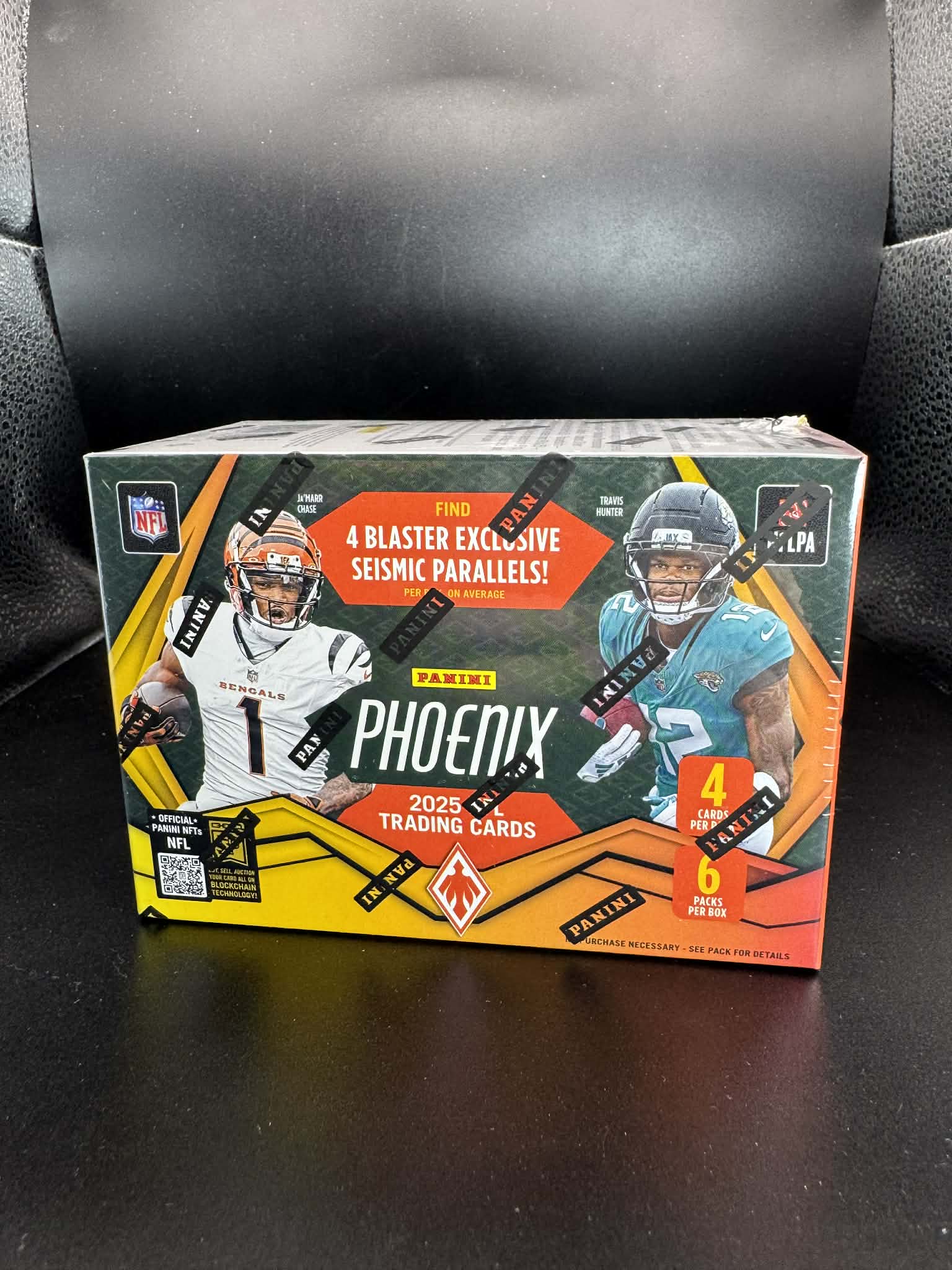 Feel the rush of ripping packs and scoring big with 2025 Panini Phoenix Football Blaster Boxes! Look for 4 blaster-exclusive seismic parallels in each box.
